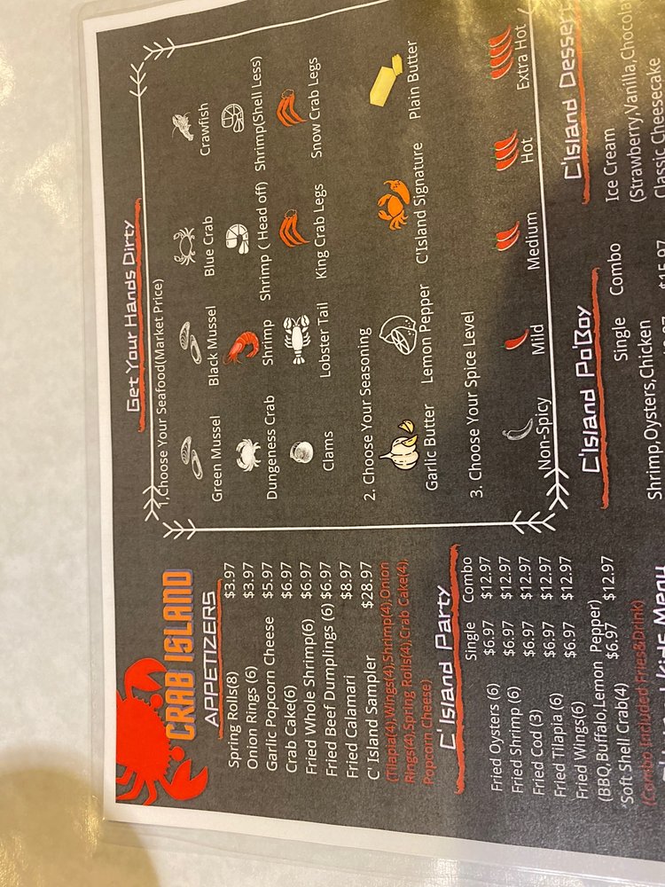 Welcome to Crab Island, a Cajun/Creole seafood haven nestled in Las Vegas. With a menu that invites you to dive into a seafood feast, this restaurant specializes in a mouthwatering array of fresh options. Begin your culinary adventure with delectable appetizers like Fried Calamari and Garlic Popcorn Cheese.